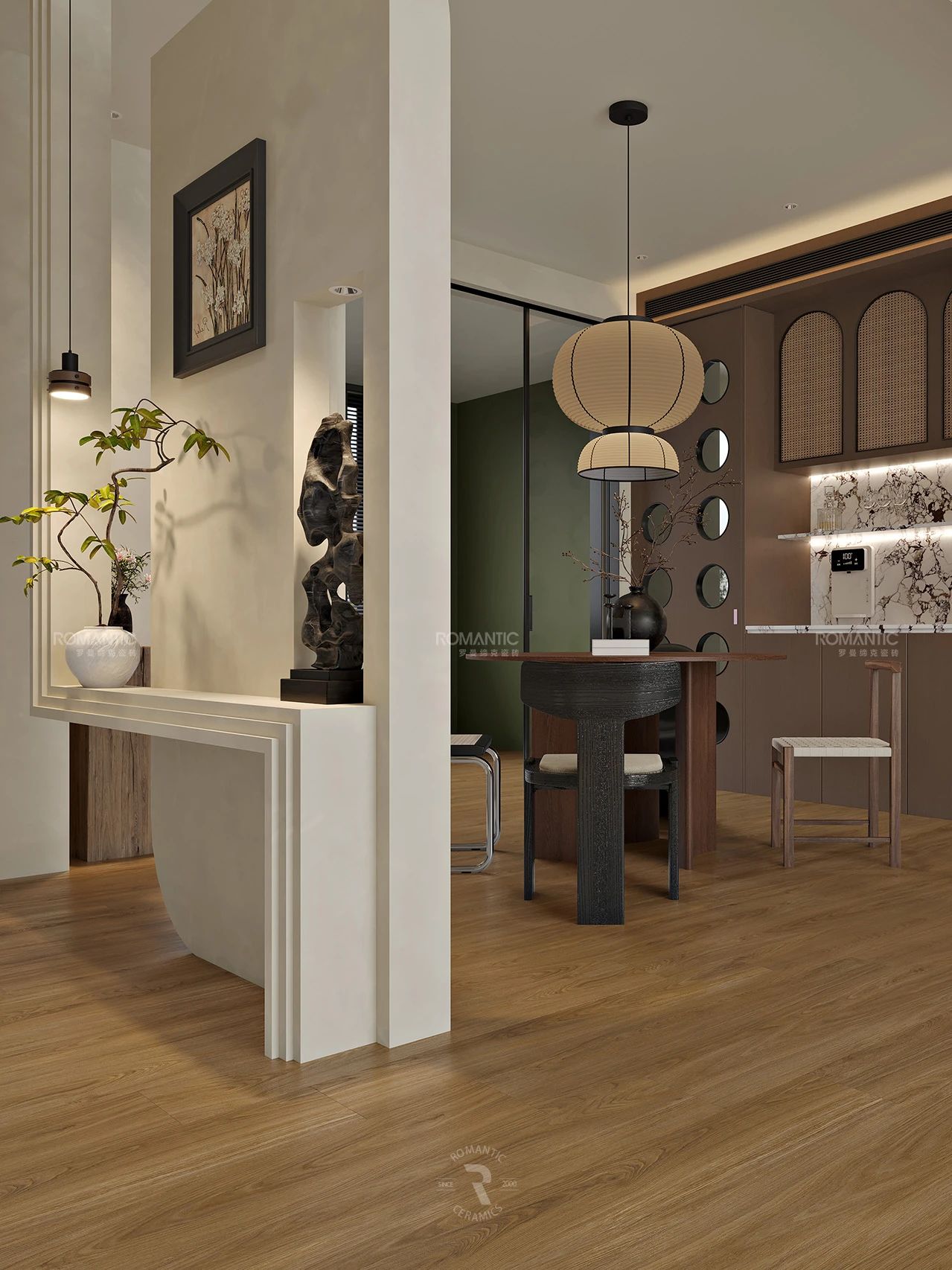 當冰冷的建材被賦予藝術的靈魂,羅曼締克瓷磚-山西長治旗艦店,以前沿的設計、豐富的選材、沉浸的體